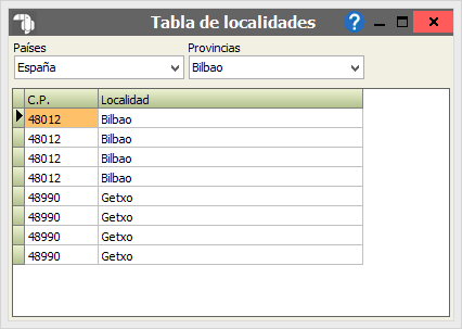 Tabla de creación de localidades para diferentes aplicaciones en el programa.